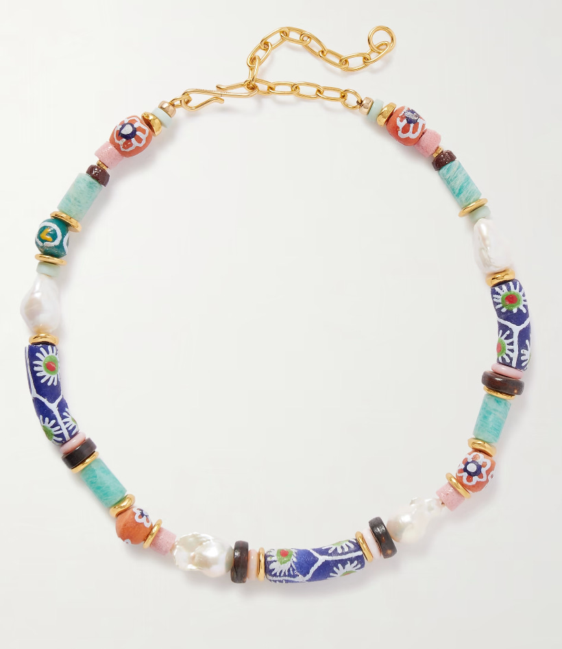 In the way that a bright bag will uplift winter outerwear, so can holiday-vibe jewellery. Wear this necklace with everything from shirts to chunky knits for a shot of joy. Necklace, £305, Lizzie Fortunato