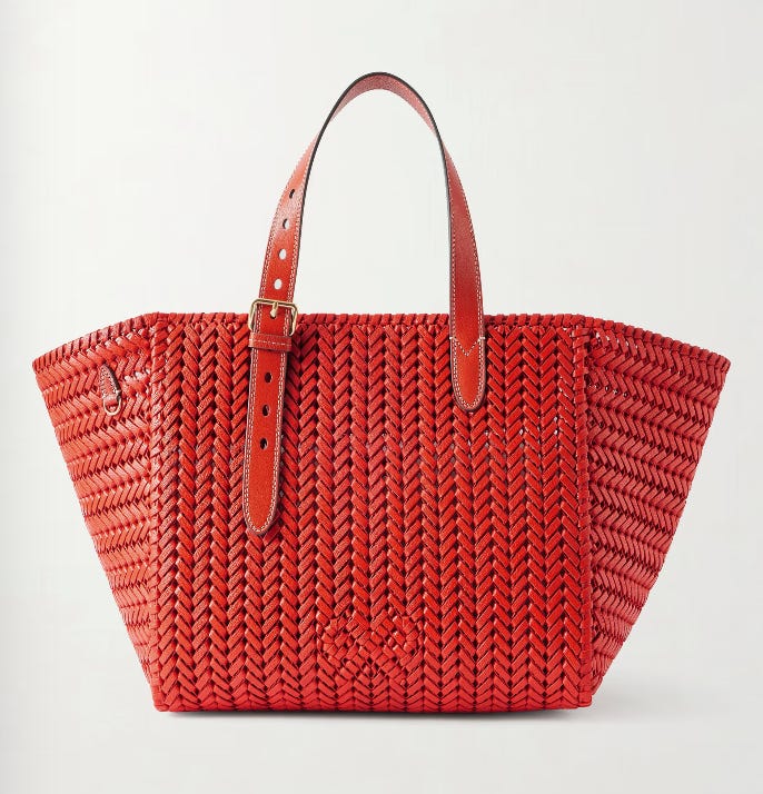 Baskets are a no-brainer accessory for summer but they can bring a levity to heavier winter outfits, due to the weave, and particularly if you choose a colour pop shade. This shape fits all your essentials, too. Bag, £1395, Anya Hindmarch